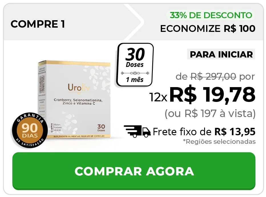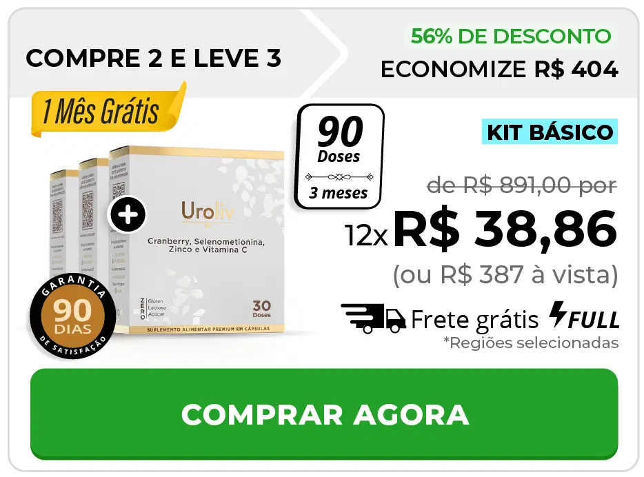 Aproveite por 3 meses para experimentar o Uroliv e veja a diferença imediata que ele trará para a sua incontinência e todos os problemas relacionados ao seu sistema urinário.