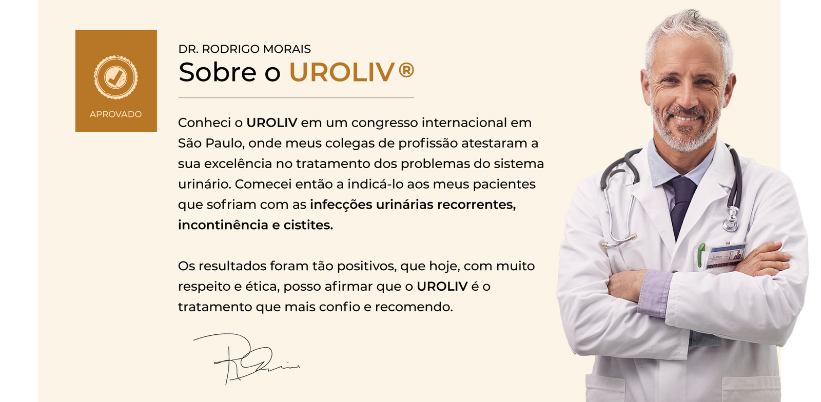— Conheci o Uroliv em um congresso internacional em São Paulo, onde meus colegas de profissão atestaram a sua excelência no tratamento dos problemas do sistema urinário.